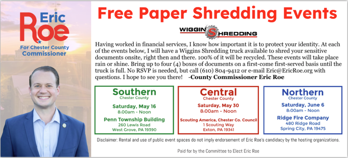 FREE PAPER SHREDDING EVENTS: MAY 16, MAY 30, & JUNE 6